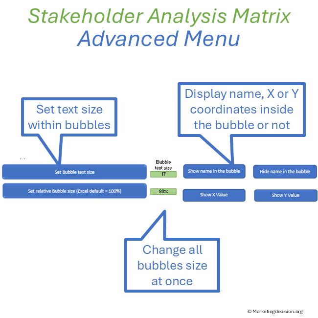 - Set relative bubble size (Excel default = 100%): Click this button once the relative bubble size is updated.