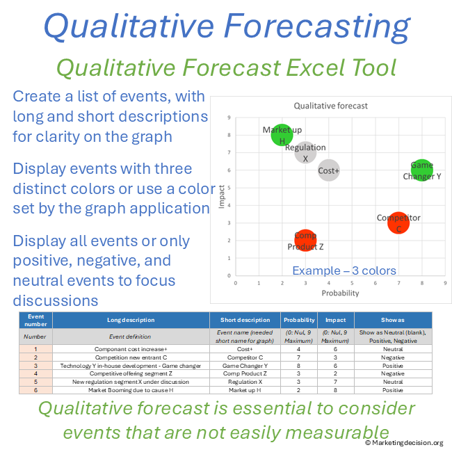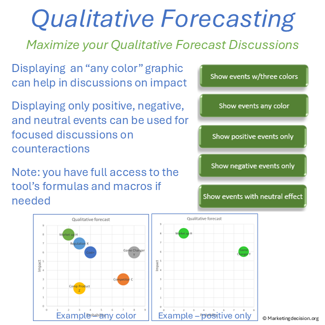 The Excel tool proposed here can be used by teams or individuals to capture market events and assess their impact and probability of occurrence on a graph. It can be utilized in multiple contexts—short meetings, workshops, or market analysis-focused sessions—with different teams. Its primary purpose is to document events, assign a probability of occurrence, and evaluate their impact. However, its greatest benefit lies in providing a structured approach that facilitates productive discussions within teams.